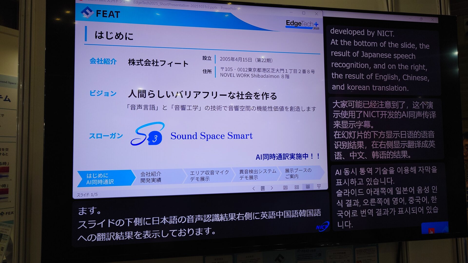 日本最大級の組込み・エッジテクノロジー総合展示会「EdgeTech+2025(※)」がパシフィコ横浜・展示ホールで開催されました(会期:2025年 11月19日〜 21日(来場者数 32,429名))。この度、株式会社フィートは、バリアフリー社会の実現を加速するために「EdgeTech+2025」に初出展いたしました。
